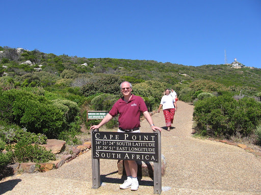 The southernmost tip of the Cape of Good Hope is called Cape Point, which is the southwestern corner of the continent of Africa. (The southernmost point in Africa is actually Cape Agulhas, 90 miles SE of Cape Point.). As you can see, the sign says it's at 34° 21' 24" South latitude. Amazingly, that's only a little further south of the equator than Atlanta is north of the equator. (Atlanta is at 33° 46' North latitude.) It's mind boggling to imagine Atlanta as the northernmost point of North America.